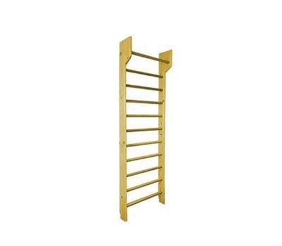 Шведская стенка эконом 240х80 со встроенным турником. Отличие эконом версии от стандарт версии в ширине боковой доски, в эконом 10 см, в стандарте 15 см. Боковые доски шведской стенки изготавливаются из клеёного бруса хвойных пород древесины, а перекладины из берёзы, диаметром 4 см. Также изготавливаем шведскую стенку на заказ, в высоту до 4-х метров, в ширину до 1 м. Качественная деревообработка, выполненная на современном оборудовании, обеспечивает ровную гладкую поверхность, идеальную подгонку деталей. Для защиты дерева от истирания, загрязнения, физической нагрузки и внешних факторов (высокие и низкие температуры, солнечный свет) деревянные элементы покрывают специальным лаком. Благодаря данному покрытию перекладины не скользят в руках, всегда остаются чистыми.